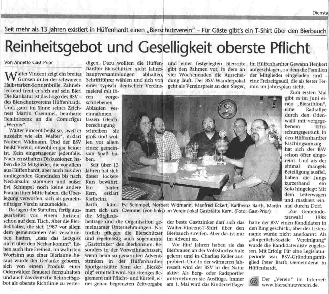 Der Zeitungsauschnitt ist aus der Ausgabe der "KRAICHGAU STIMME" vom Fastnachtsdienstag dem 27.02.2001.