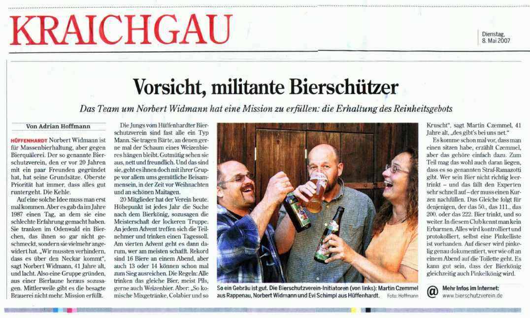 Der Zeitungsauschnitt ist aus der Ausgabe der "KRAICHGAU STIMME" vom 08. Mai 2007